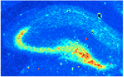 Come on, it's beautiful! During my time doing research on laser ablation, we made some pretty images of elemental composition of biological tissues; below is an image of zinc in a rat's hippocampus. These images had noise, which was beautiful, so why not amplify it and make it stand on its own?